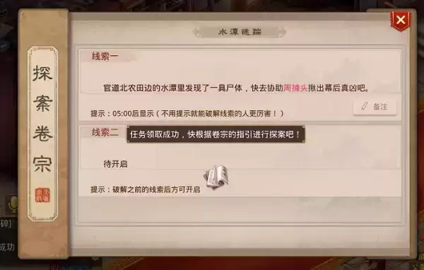 李捕头处领任务- 对话周捕头-官道北仵作-揽仙镇张老板-衙门贾师爷- 进入聚仙镇-进朱府对话朱氏-继续对话朱氏查看书信-往左边走到前庭-对话前庭的四个人获取信件-天墉城官府-对话周捕头-对话大胡子-点击大胡子边上的马车(这个不太好点,离马车近一点再点击 ,不行的话多试几次 )