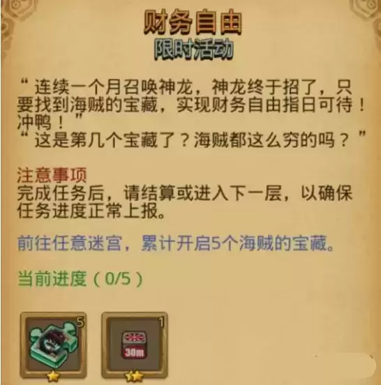 不思议迷宫财务自由是最新的任务,这个任务还是很好做的,但是不少玩家不清楚这个玩法。想要知道这个任务怎么完成比较好,不知道完成方法的小伙伴们,就一起来看看吧。