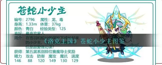 《洛克王国》苍蛇小少主怎么样呢,厉害吗?这是洛克王国游戏中的宠物之一,很多小伙伴不清楚这个宠物技能属性怎么样,技能该怎么配招,下面小编就给大家带来了《洛克王国》苍蛇小少主宠物技能图鉴介绍,感兴趣的小伙伴一起看看吧!