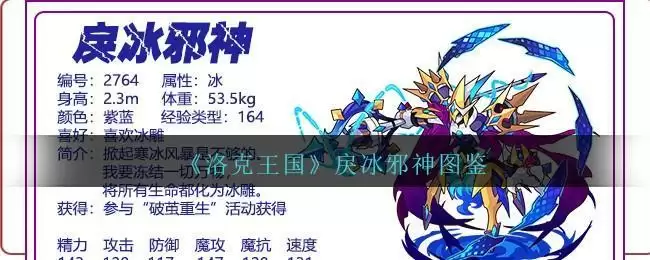 《洛克王国》戾冰邪神怎么样呢,厉害吗?这是洛克王国游戏中的宠物之一,很多小伙伴不清楚这个宠物技能属性怎么样,技能该怎么配招,下面小编就给大家带来了《洛克王国》戾冰邪神宠物技能图鉴介绍,感兴趣的小伙伴一起看看吧!