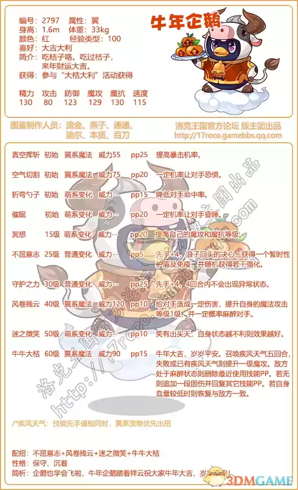 《洛克王国》牛年企鹅怎么样呢,厉害吗?这是洛克王国游戏中的宠物之一,很多小伙伴不清楚这个宠物技能属性怎么样,技能该怎么配招,下面小编就给大家带来了《洛克王国》牛年企鹅宠物技能图鉴介绍,感兴趣的小伙伴一起看看吧!