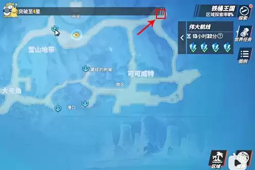 前往“铁桶王国”,具体位置就是在地图的右上角这里,去如图所示的地方,可以看到闪光点,靠近互动就可以触发剧情了。