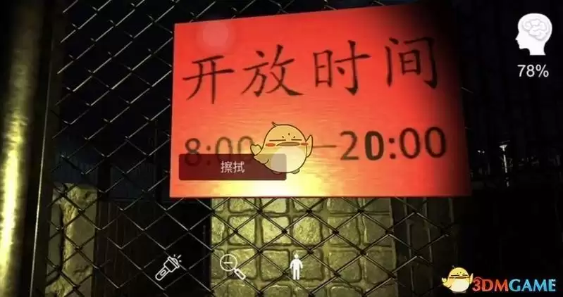真正的时间:用【一块湿布】去擦一下【开放时间】的牌子获得该线索。