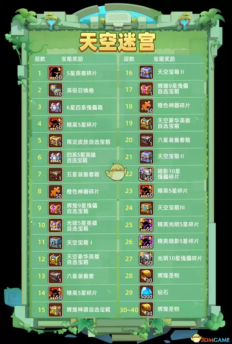 30-40层迷宫,每层的宝箱奖励均为30个辉煌圣物。