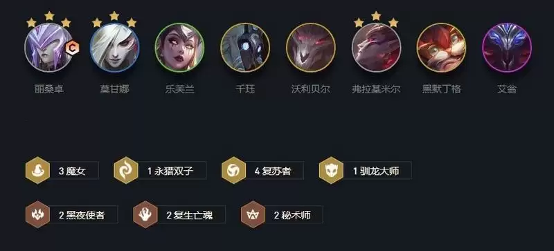 开局首抢的装备是手套,先做丽桑卓的法爆蓝霸符,最后无尽。前期不升人口,只留吸血鬼和丽桑卓,不卡利息的话也可以留妖姬,莫甘娜。5人口卡着利息D出三星丽桑卓,就可以锁血上人口。优先丽桑卓的法爆、蓝霸符,最后无尽,莫甘娜复活甲、鬼书,最好都是黑暗的,其次还可以给妖姬做圣杯,而且最好是黑暗的恶意圣杯。
