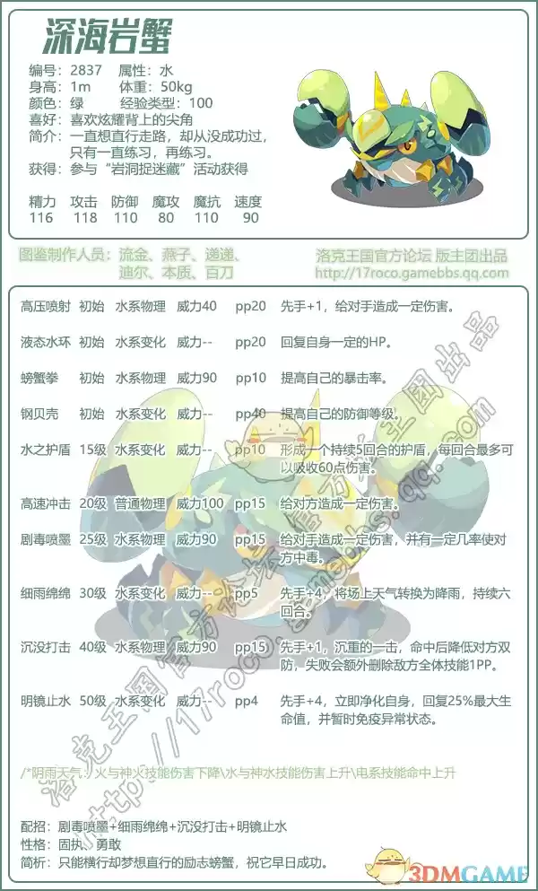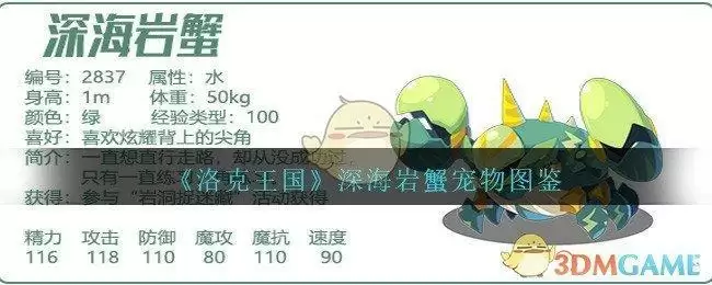《洛克王国》深海岩蟹怎么样呢,厉害吗?这是洛克王国游戏中的宠物之一,很多小伙伴不清楚这个宠物技能属性怎么样,技能该怎么配招,下面小编就给大家带来了《洛克王国》深海岩蟹宠物技能图鉴介绍,感兴趣的小伙伴一起看看吧!