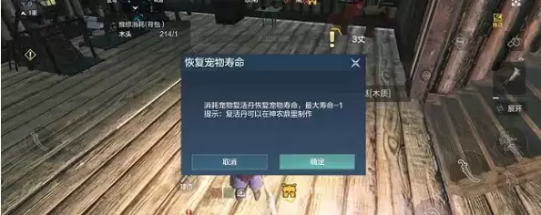 2、当寿命为零时呼唤宠物会出现消耗“宠物复活丹”恢复宠物寿命的提示。(如果没有复活丹可以去神农鼎中制作也可以在成长商店中购买)
