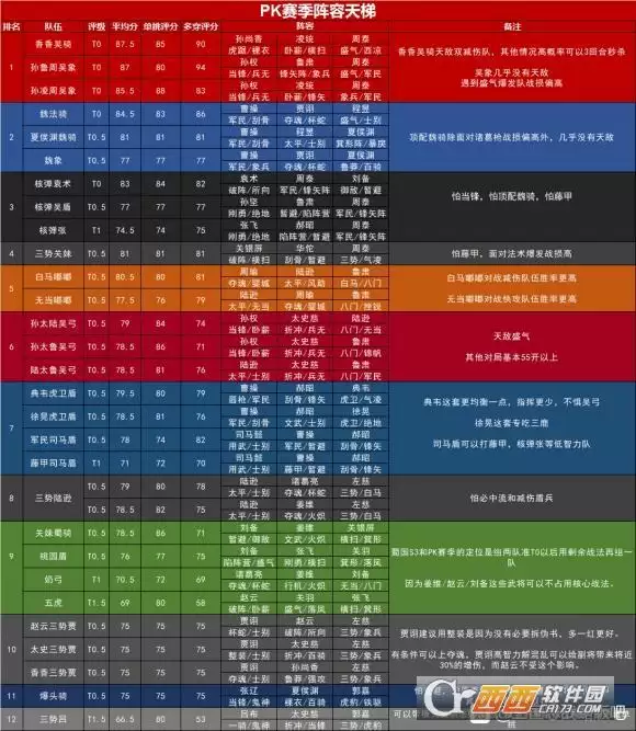 3. 基本保留了T1强度以内的阵容,我的想法是如果能组表里的阵容,建议一步到位,没有必要组一些T1~T2强度的阵容,除非武将/战法不全。