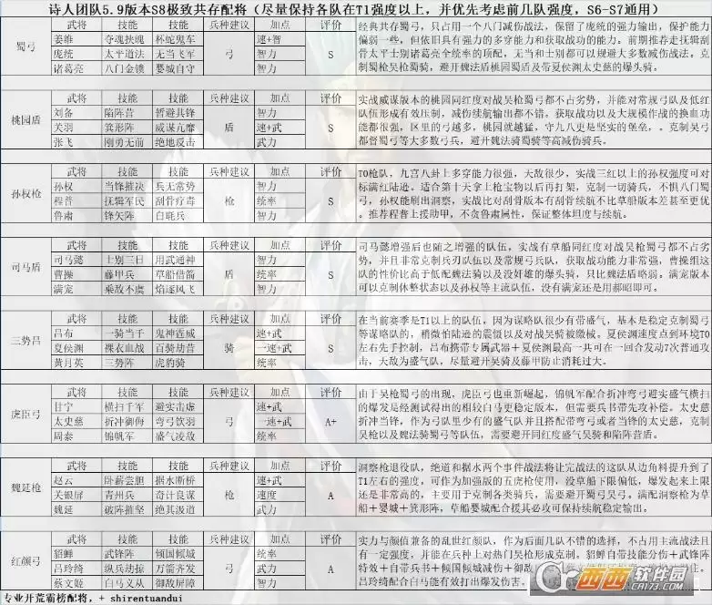 (非单兵作战极致搭配以及十队共存极致搭配,单兵作战五队可以给一些队伍加强,想要十队共存可额外添加都督、蛮象、群弓、魏骑等队伍)
