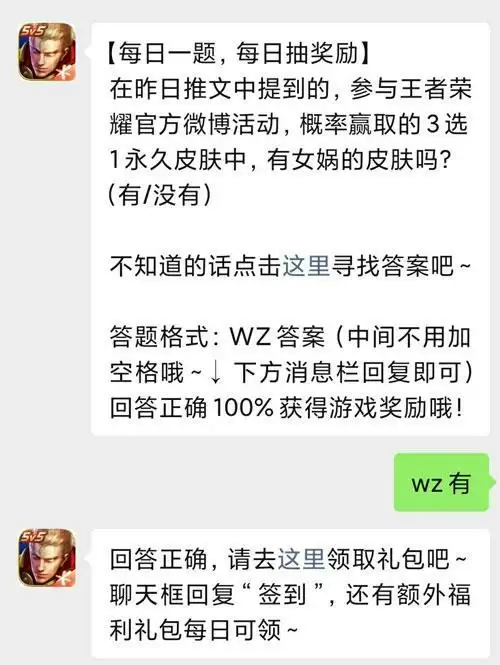 在昨日推文中提到的参与王者荣耀官方微博活动概率赢取的3选1永久皮肤中有女娲的皮肤吗