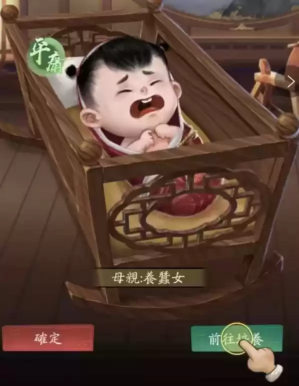 点击前往培养就可以进入培养界面,点一下拨浪鼓,出现孩子取名界面,可以一键取名,也可以投骰子决定孩子的名字,然后勾选免费授学,这时候第一个孩子就这样诞生了。