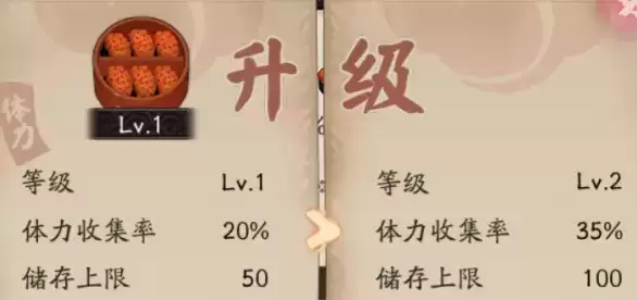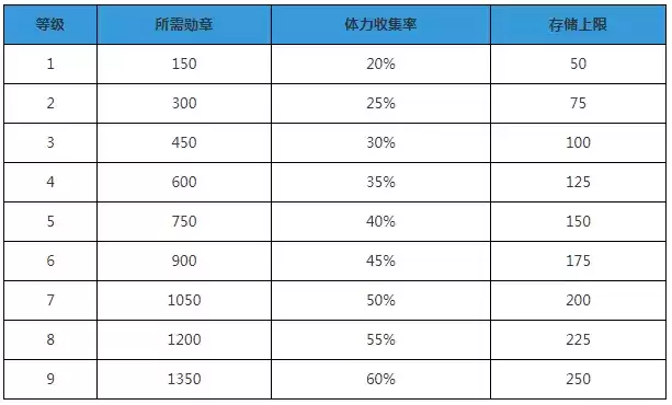 体力食盒一级,消耗150勋章,存储溢出20%的体力,体力储存上限50。