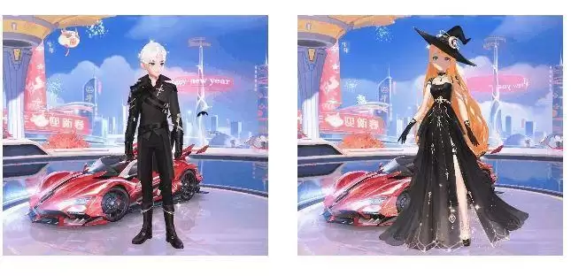 身黑色的夜行衣,胸前装饰着十字标志,搭配一双黑色长靴,犹如黑夜里的猎魔人;一身抹胸的夜黑色的长裙,搭配标志性的占星帽,犹如黑夜里的女巫。