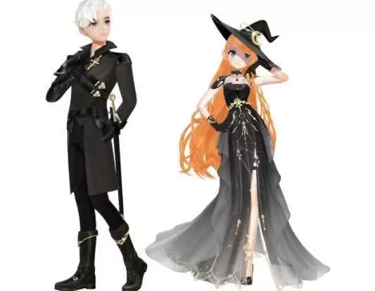 身黑色的夜行衣,胸前装饰着十字标志,搭配一双黑色长靴,犹如黑夜里的猎魔人;一身抹胸的夜黑色的长裙,搭配标志性的占星帽,犹如黑夜里的女巫。