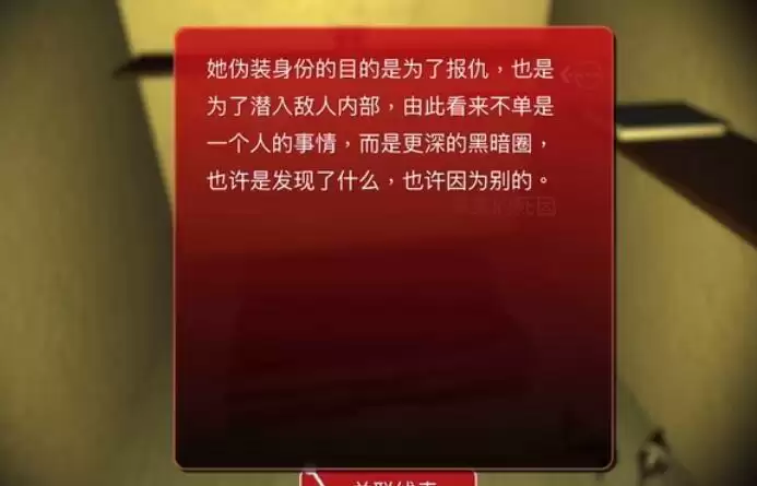 她伪装身份的目的是为了报仇,也是为了潜入敌人内部,由此看来不单是一个人的事情,而是更深的黑暗圈,也许是发现了什么,也许因为别的。