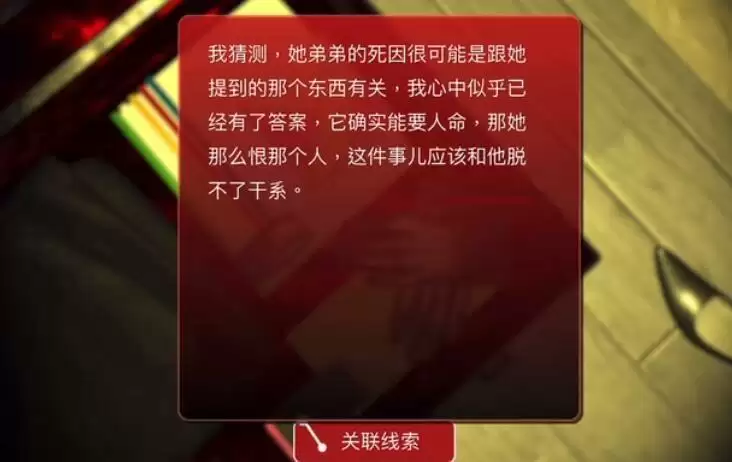 弟弟的死因这个线索需要关联线索获得,具体如下: