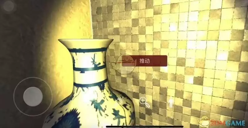 如图,在【溪水间】外花瓶这里,后面的墙可以推动,打开就是一间密室!