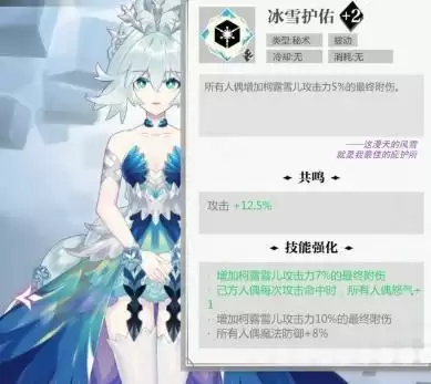 再着重结束一波辅助技能(工具人技能) 柯露雪儿(雪儿):第一被动,攻击回怒,第一大招,加攻击,强化对象大招额外释放一次(上测bug用不了)
