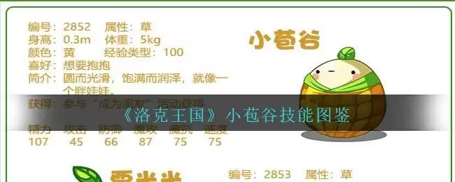 洛克王国小苞谷怎么样,厉害吗呢?游戏中宠物众多,很多小伙伴想知道洛克王国【小苞谷】宠物技能是什么,该如何配招呢?下面小编就给大家带来了《洛克王国》小苞谷技能图鉴介绍,感兴趣的小伙伴一起看看吧!