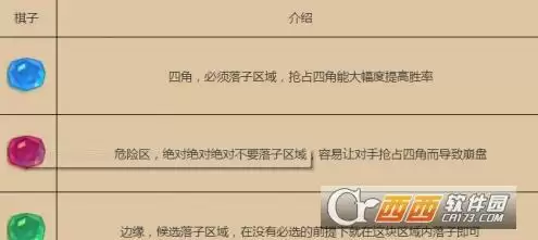 大致上可以将棋盘分为四种区域,这边用不同颜色的棋子给大家表现出来。