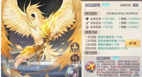 2、神兵节奏慢不代表就失去先机,如果枪碰上葫芦,被清了岂不是更难受,同等多三火的情况下 就可以利用前三个幻灵天赋来打乱敌我的神兵节奏让己方神兵的功能性最大化,可以根据自身群雄环境来设置。养成上建议新区优先五星有增伤减免连携的橙色神兵了,然后无双葫芦&枪&斧子都是可以的,和氏璧五星即可。