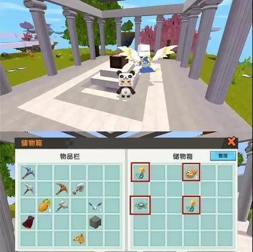 在空岛神殿NPC身旁看到一个大型储物箱!关键就在这个储物箱里!