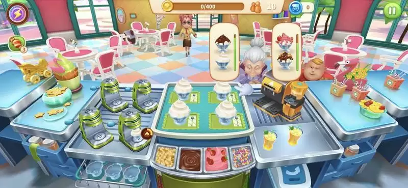 其实,在这里'直觉'可以比较顺畅的指引你完成所有的操作. 从截图中可以看到,只需要把冰淇淋放到机器上做好,然后涂抹上四种蘸料,就可以满足顾客刁钻的多种需求了.