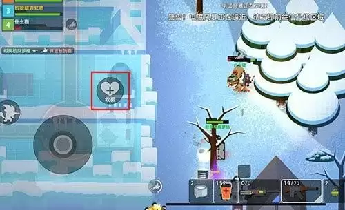当血量没有的时候,角色就会倒地,此时无法开枪,然后队友可以来到这个倒地队友上面,此时在摇杆按钮的上面,有个救援的按钮,点击之后,就可以读条救人。当这个圆圈满了之后,队友就可以成功被救治。
