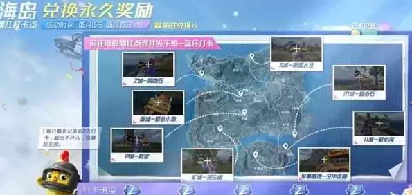 和平精英海岛打卡之旅攻略,海岛打卡之旅打卡拍照点位置一览。和平精英海岛打卡之旅活动中用户根据提示前往拍照打卡来完成任务,有8个打卡点,