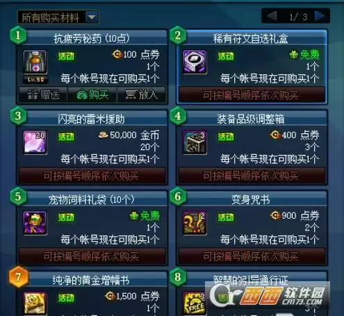 趣味大寻宝实际上是一个绑定销售的活动,玩家需要依照顺序进行购买才能获得对应的道具,道具共计24种,这其中比较不错的道具有灿烂徽章自选礼盒、梦想白金徽章礼盒、增幅保护券,这类比较极品的道具顺序都比较靠后,在购买14次之后,玩家才能够进行购买。当然这些道具并不是非得用点券才能购买,部分道具可以使用金币进行不买,甚至有部分道具是免费的。建议玩家根据自己角色的需求进行购买。