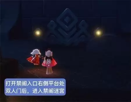 打开禁阁入口右侧平台处双人门后,进入禁阁迷宫