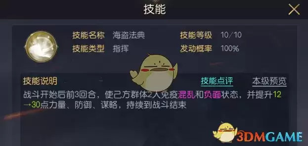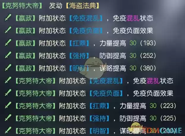 克努特大帝的技能效果比较直观,前3回合为己方群体2人施加负面免疫,并提升30点输出、防御属性,属于完全针对负面队伍的技能,提升效果也比较全面,适配性非常出色。