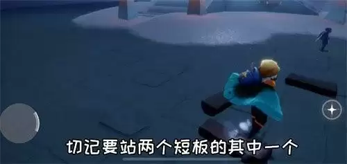 3、这个时候人物可以站在这个木板上面,一定要站在短的木板上才行,然后视角可以往上拉或者往下拉。