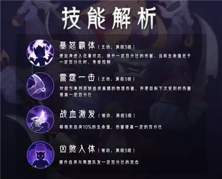 被动技能【战血激发】是每当蚩尤损失一定百分比的生命值,蚩尤的攻击伤害就会得到一定程度的提升,【凶煞入体】则是一个群体buff技能,可以为蚩尤周围的友军提供一定百分比的攻击加成。