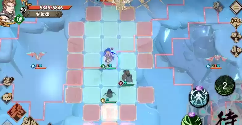 中间三人组,夏侯仪先上来用地火覆盖boss的地形,古伦德攻击,然后封铃笙给古伦德加血