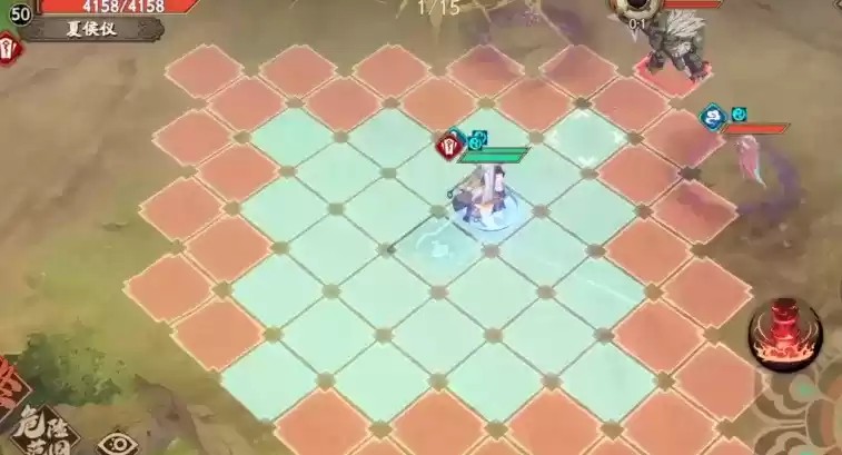 夏侯仪往前走,封铃笙再动,然后夏侯仪放陨石打boss,回合结束,过关