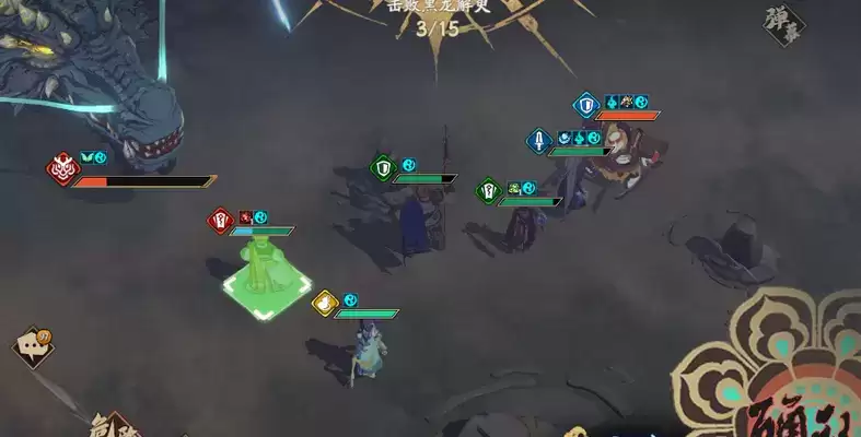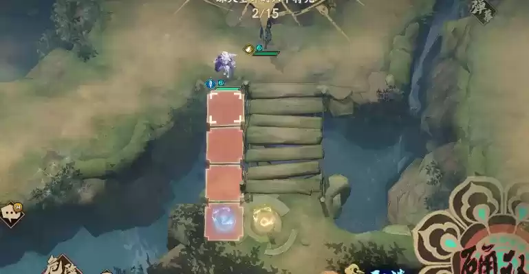 璇玑走到符上,全体加速,古伦德和夏侯仪分别吃掉右上的2个药,注意,这里最好是夏侯仪吃上面的药,然后冰璃先往下走,封铃笙再动冰璃,冰璃飞刺吃符