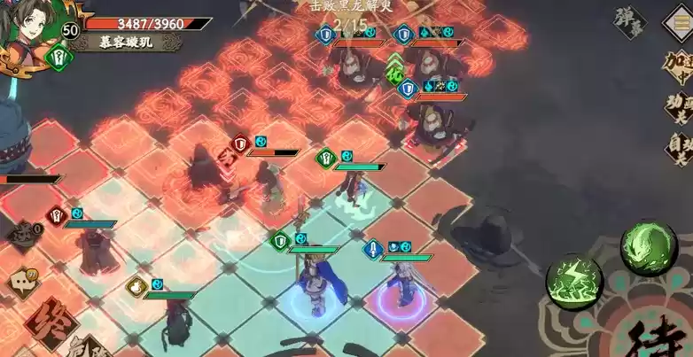 各个人物走到这些位置,璇玑杀一个鬼卒,冰璃注意不要攻击,封铃笙继续加血