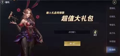 将获得的礼品码,复制粘贴到这个输入框中,点击确定按钮就能直接领取礼包奖励了。