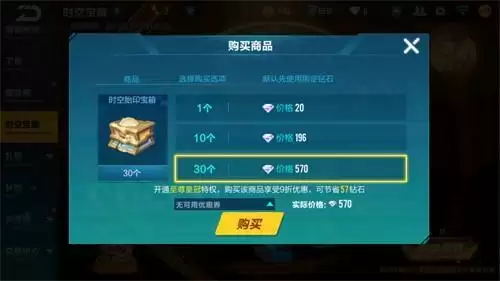 将qq飞车手游时空宝藏中的全部奖励都获取需要购买220个宝箱。宝箱的的价格为:一个20钻石,10个196钻石,30个570钻石。