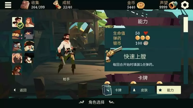 枪手的被动可以帮助你每回合至少有一颗弹药,这样不会出现像每回合开始没有弹药的尴尬