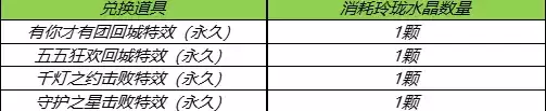玲珑水晶可在玲珑水晶商店兑换以下奖励: