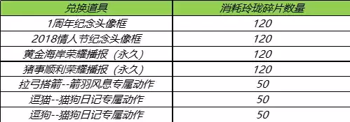 玲珑碎片可在玲珑碎片兑换商店兑换以下奖励: