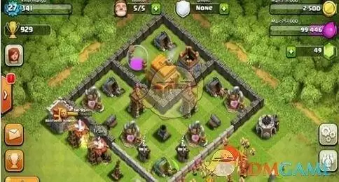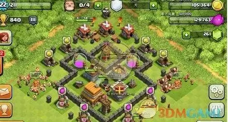 把迫击炮的城墙升级,这样敌人就不能满血进入我们的部落范围,将比较不相关的东西放在城墙外面,资源和大本营放在城墙里面