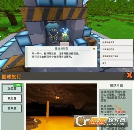 我们当前正处在迷拉星,想要传送到烈焰星时显示传送舱的等级不够,需要去空岛找到合成材料,使用升级元件A型来升级传送舱。