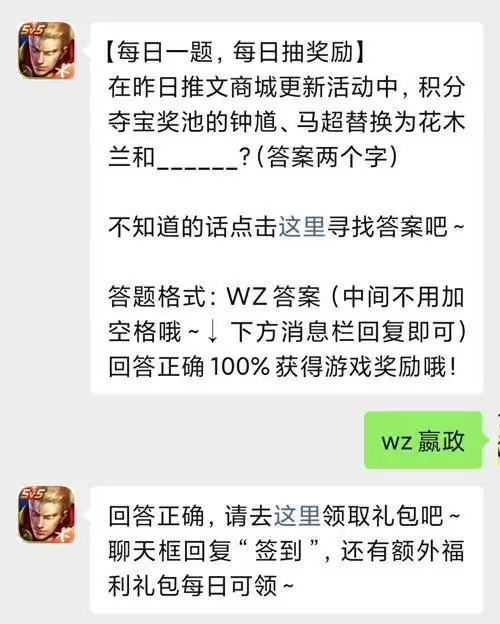 在昨日推文商城更新活动中,积分夺宝奖池的钟馗、马超替换为花木兰和_