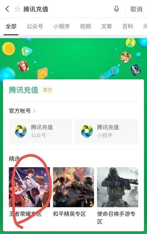 1、首先,我们打开微信,搜索腾讯充值,并进去王者荣耀专区。