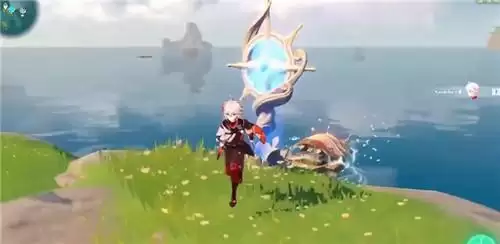 首先在1.6版本下半部分,旅行者会通过活动任务拿到一艘小船,如上图所示。用途之一就是前往稻妻城的部分岛屿-金苹果群岛,届时会和枫原万叶相遇。(PS:其实他是被雷神流放至此。)