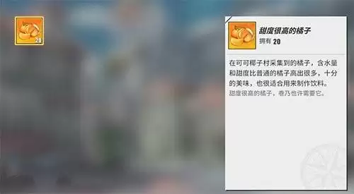 这个甜度很高的橘子,可以交给风车村的卷乃,然后就可以得到这个奖励了。就是玩家来到这个风车村的餐厅,然后找到老板卷乃,和其对话,就可以接取任务然后提交橘子,随后就可以完成任务了,注意这个任务只能完成一次,也就是采集一个就可以了,如果你采集多了的话,那么就只能占用背包的空间。
