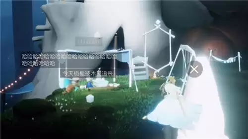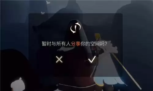 然后共享空间内的家具都会显现出来,注意同地图的人只能共享一次空间,每个光之子分享空间后,家具不管是不是你的,都会显现且都能实体触碰。这个共享的持续时间仅有5分钟,五分钟的过程由石碑发光占比表示,全部熄灭后家具就会消失。